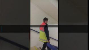 На сходинках магазину Tesco у Великобританії, співробітник використовує акустичні і металеві рейки для імітації церкви в дії.