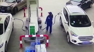 Водій жінка в Китаї, який щойно отримав диплом, знищив паливний насос на заправній станції, коли він намагався піти з соплом ще прив'язані до машини.