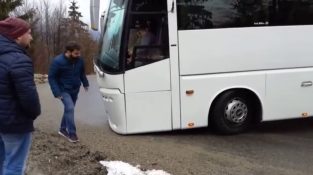 У неділю, 1 квітня 2018 року в Grădiştei ущелині в Румунії, перед туристичним автобусом знаходить асфальт, на повороті. Водій намагався поставити назад і натиснути на педаль акселератора, Але [...]