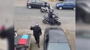 У Carshalton, Англія, чотири нахабні злодії прийшли з самоката перед будинком, щоб вкрасти мотоцикл відкрито, перед власником. Власник був присутній і записав з його мобільним телефоном в цілому [...]