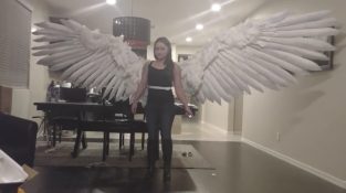 Η Alexis Норьега, професійний дизайнер костюма, афішувати механічних крил, яка виробляє і продає сторінку thecrookedfeather.com.