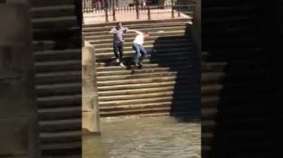 Людина починає знімати 2 вболівальників НФЛ, які спускаються по сходах на річці Темза, коли раптом...