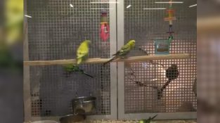 Папуги в клітці навчилися перетворювати дерево, сидячи на гойдалках.
