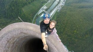 Електростанція Trbovlje в Словенії, Він має найвищий димохід в Європі з висотою 360 метрів. Акробат Флавіо Serneskou зі своєю подругою, залізти в трубу і отримати велику дозу адреналіну. [...]