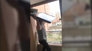 Роздратований після виключення команди з чемпіонату світу з футболу, аргентинське метання телевізора з балкона.