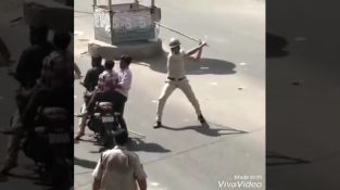 В Індії, не рекомендується переміщувати 3 людини на мотоциклі. Тут ми бачимо поліцію, щоб зробити догану громадян.