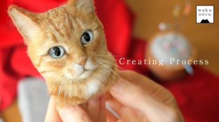 Художник Waku Неко з Японії, виробляє реалістичні тривимірні портрети реальних кішок відправки клієнтам фотографій. Основний компонент будівельної вати.