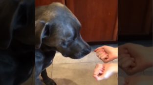 Собака здається особливо розчарована, коли вгадування неправильно руки.