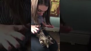 Кошеня Банзай грає в руках власника, і копіює руху руки маленьких ніг.