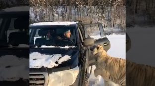 Росіянин Михайло Зарецький доглядає та вирощує тигрів близько 17 років. Тут ми бачимо два з них посадили в машину для їзди в сільській місцевості.