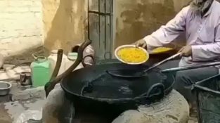Торговець показує нам, що готує Далекий-Далекий, індійська закуска, що складається в основному з картопляного крохмалю, і тапиока борошна. Далеко далеко набухає відразу при варінні в гарячому маслі і готовий в лічені секунди.