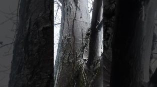 Дерево покрите шаром льоду в місті Еванстон Іллінойс, і лід тане, здається, поступово між стволом.