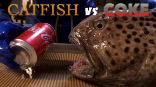 Голова вирізану з зубатки кусає банку Coca-Cola міститься в рот. Навіть якщо риба мертва, м'язи і нерви ще є резерви енергії і продовжують реагувати до [...]