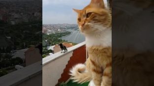 Кішка і ворона є коротке обговорення на балконі будівлі. Як видно, не згодні з усіх питань.