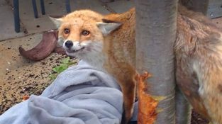 Члени організації по захисту тварин Wildlife Aid в Великобританії, Вони попросили звільнити дику лисицю, яка застрягла в дереві.