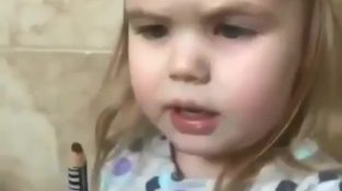 Маленька дівчинка хоче приміряти підводку мами
