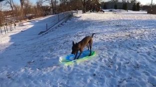 Нокс собака любить катання на санях і ніякої допомоги не потрібно, щоб грати в цьому. Спостерігаючи сани рота, підноситься на невеликому пагорбі і почати гру.