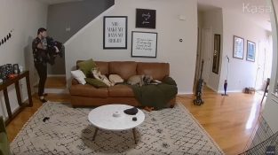 Людина весело тусуватися з його собака бігає по дому. Вийшовши з кухні, входить у вітальню, і собака пішов за ним схопившись з дивана. Але собака втратить [...]