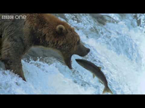 ہر سال, شمالی امریکہ میں گریزلی ریچھوں کی بقا ایک بڑے واقعے پر منحصر ہے۔: بحرالکاہل سے لاکھوں سالمن کی ان دریاؤں میں واپسی جہاں وہ پیدا ہوئے تھے۔. اس ویڈیو میں, درجنوں بھوکے ریچھ دریا کو پار کرنے کے لیے سامن کے منتظر ہیں۔.