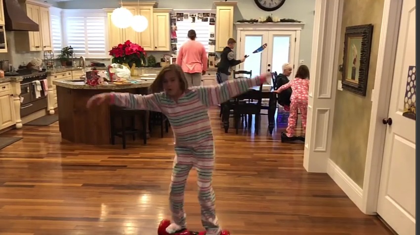 ایک لڑکی ہوور بورڈ پر نفیس اسٹنٹ کرنے کی کوشش کرے گی۔.