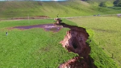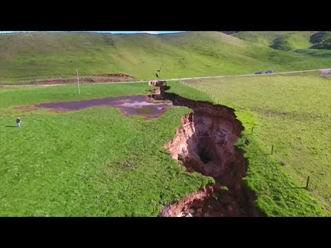 نیوزی لینڈ کے بے آف پلینٹی کے ایک فارم پر ایک بڑا سنکھول پیر کو کھلا۔ (30 اپریل) نے 60 کا انکشاف کیا۔,000سال پرانا آتش فشاں ذخیرہ.