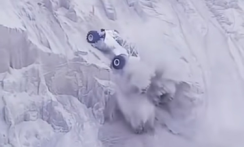 سکین، ناروے میں آف روڈ ریس کے دوران, ایک ڈرائیور مہارت سے اپنی بگی میں کھڑی پہاڑی پر چڑھتا ہے۔.