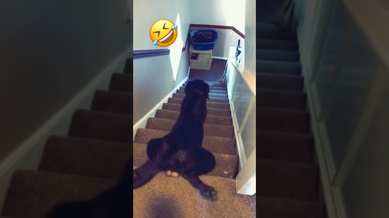 ایک کتا ایک عجیب تکنیک کے ساتھ سیڑھی سے اتر رہا ہے۔