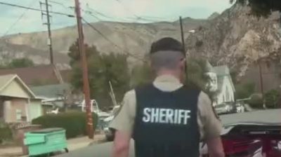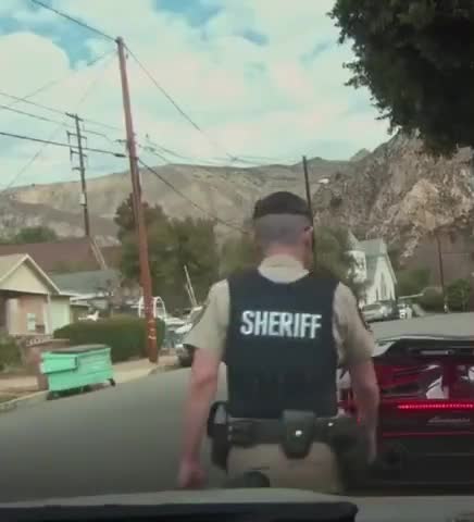 شیرف اسپورٹس کار کو روکتا ہے اور ڈرائیور سے کاغذات مانگتا ہے۔