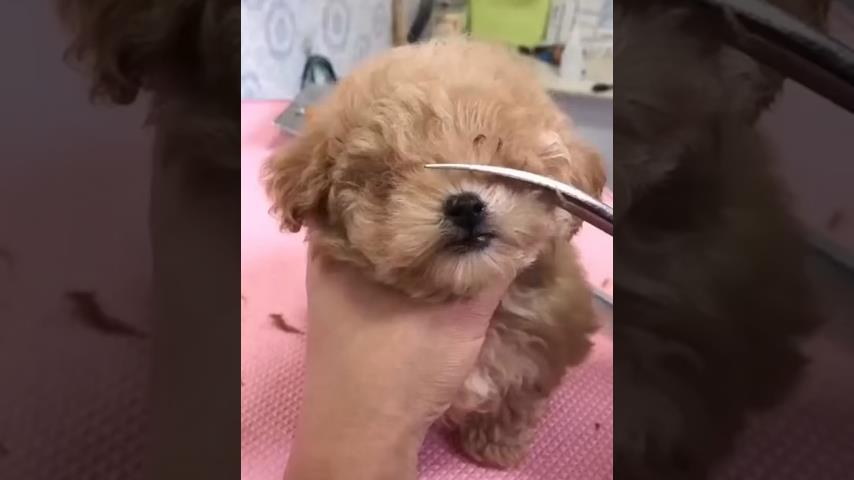 ایک کتے کی آنکھوں کے گرد بال کٹوائے جاتے ہیں۔, تاکہ وہ بہتر دیکھ سکے۔.