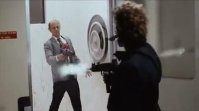 دو آدمی ایک دوسرے کو قریب سے گولی مارتے ہیں لیکن ان میں سے کوئی بھی گولیوں سے نہیں گرتا. 1988 کی فلم 'ڈیڈ ہیٹ' کا ایک منظر۔.