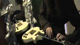موسیقار سٹیل پھلیاں اپنے ایک ٹریک کو لائیو پرفارم کرتا ہے۔, το 'مولوٹوف کاک ٹیل لاؤنج'. اسٹیل بینز بیک وقت گٹار بجانے کی صلاحیت کے لیے جانا جاتا ہے۔, ڈھول اور گانا.