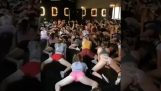 پیدل چلنے والی سڑک پر, ایک آدمی کتے کو لات مارنے کی کوشش کرتا ہے اور اسے سبق ملتا ہے۔.