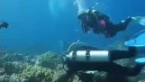 سمندر کے بیچ میں, ایک عورت اسنارکلنگ کے لیے کشتی سے اترتی ہے۔. لیکن جب وہ پانی میں پاؤں ڈالتی ہے۔, ایک شارک اپنا منہ کھلا ہوا ظاہر ہوتا ہے۔. اصل میں, یہ 'ملکہ نکی' نامی ٹائیگر شارک کے بارے میں ہے جو لوگوں کے ساتھ انتہائی دوستانہ ہے اور غوطہ خوروں کو جانتی ہے. بس ہیلو کہنے آیا تھا۔.