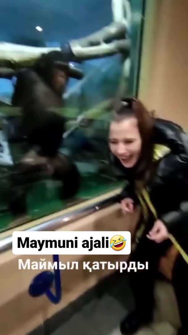 چمپینزی ایک لڑکی کو دکھا رہا ہے۔