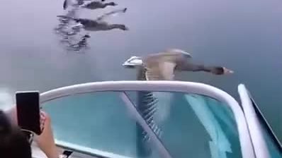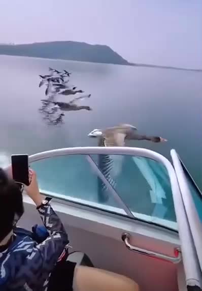 گیز کے ریوڑ کے ساتھ کشتی کی سواری۔