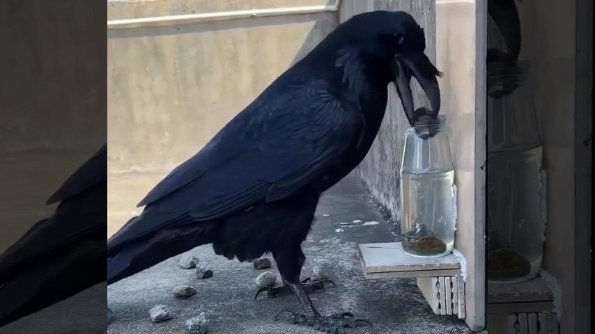 کوا اتنا ہوشیار ہے کہ برتن میں پتھر رکھ سکے۔, جب تک سطح بڑھ نہ جائے اور وہ پانی پی سکے۔.
