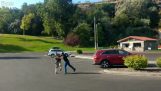 عورت نیچے کی طرف لپکتی ہوئی اپنی کار کو روکنے کے قابل نہیں ہے۔