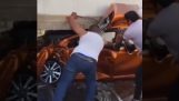 ڈرائیور بغیر بریک کے پوری بس سے گر گیا۔ (انڈونیشیا)