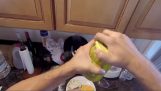 ایک آکٹوپس ڈھکن کھول کر ایک جار میں سے نکلتا ہے۔.