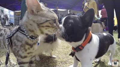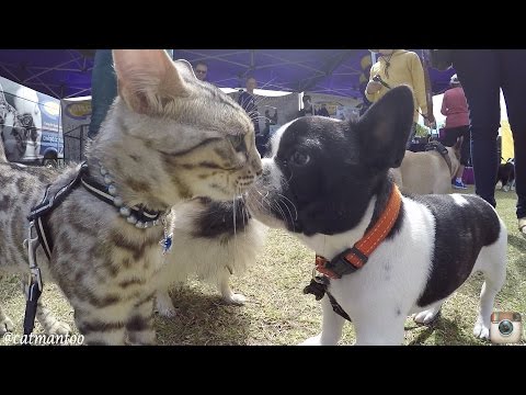 دیکھیں کیا ہوتا ہے جب 50 مختلف کتے بومر کے ساتھ ناک میں ناک کرتے ہیں۔ (ایک CAT) کتوں کا ردعمل انمول ہے۔.