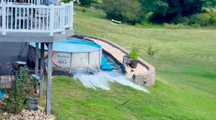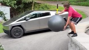 انسان نے فٹنس بال کو زمین پر پھینک دیا, اور اس کے اوپر ایک ہتھوڑا. گیند اچھال گئی اور, دیکھو اور دیکھو, ہتھوڑا نے اسے سر پر مارا.