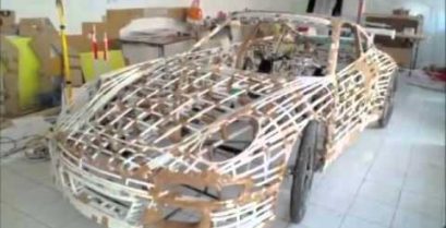 Porsche GT3 RS کی نقل جو سائیکل کے پہیوں سے بنائی گئی ہے۔, پلاسٹک پائپ اور موصل ٹیپ.