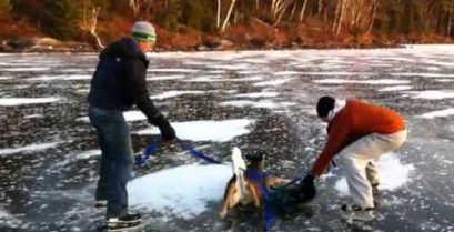 جمی ہوئی جھیل سے ہرن کا بچاؤ