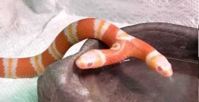 یہ خاص سانپ ہنڈوران کے دودھ کے سانپ کی نسل سے تعلق رکھتا ہے اور دو سروں کے ساتھ پیدا ہوا تھا۔. آپ دیکھ سکتے ہیں کہ اس کے دونوں سر جسم کو کس طرح کنٹرول کرتے ہیں۔, جس لمحے وہ پانی پینے کے لیے ہم آہنگ ہونے کی کوشش کرتے ہیں۔.