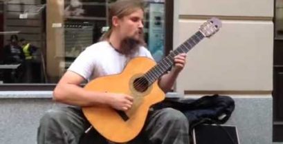 پولینڈ کی سڑکوں پر ایک متاثر کن گٹارسٹ