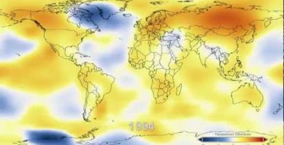 ناسا سے زمین کا گرمی کا نقشہ, 130 سالوں میں درجہ حرارت کی تبدیلی کو ظاہر کرتا ہے۔, 1880 سے 2011 تک. درجہ حرارت میں اضافہ تقریباً 4 ڈگری سیلسیس ہے۔.