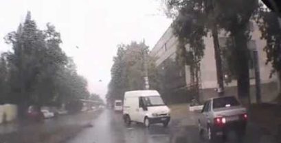 یوکرین کے شہر دنیپروپیٹروسک میں ایک ڈرائیور کھلے کنویں پر اپنی وین چلا رہا ہے۔. گاڑی لفظی طور پر خود کو لانچ کرتی ہے۔, لیکن خوش قسمتی سے بغیر کسی سنگین حادثے یا چوٹ کے.