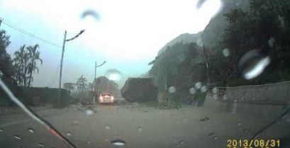 تائیوان میں ڈرائیور بڑے پیمانے پر چٹانیں گرنے سے بچ گیا۔