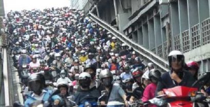 رش کے اوقات میں سکوٹروں کی متاثر کن تعداد, تائی پے، تائیوان کی ایک سڑک پر. شہر میں فی 1000 باشندوں کے لیے 415 سکوٹر ہیں۔.