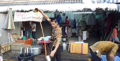 تھائی لینڈ میں بنکاک کی سب سے بڑی مارکیٹ میں, چٹوچک, ایک دکاندار آئسڈ چائے کو اصلی طریقے سے تیار کرتا ہے۔. ملائیشیا میں, اس تکنیک کو تہ طارق کہتے ہیں۔.